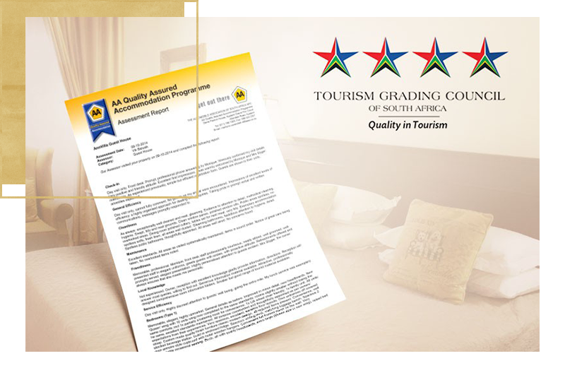 AnnVilla boasts four stars from the TGCSA and Superior status from the AA Quality Assured Accommodation Program. AnnVilla is highly comfortable with excellent service and hands-on management.