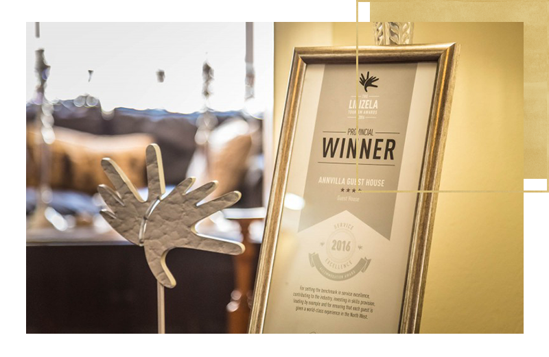 Lilizela Awards 2016We are pleased to announce that we have once again won The Lilizela Tourism Award. This year we took home the award for being the best in the Service Excellence, Accommodation category (North West Province; 4-star).